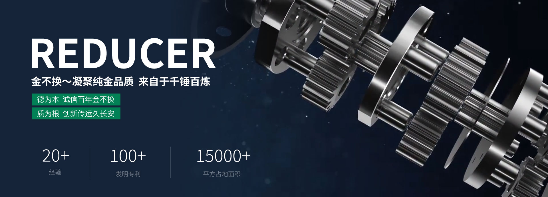 生產車間10000多平米,創建于2000年7月,以專業專注于生產制造“金不換”牌多類減速機械產品: 行星齒輪減速機(P系列、 NGW/NAD/NBD/NCD、非標行星減速機)、硬齒面齒輪減速機(ZDY、ZSY、ZLY、R、S、K、F、T多系列直齒、斜齒、錐齒、螺旋齒等齒輪減速機)、行星擺線針輪減速機(8000系列、X/B系列)、蝸輪蝸桿減速機(圓弧齒圓柱蝸桿減速機WH系列、CW系列、平面二次包絡蝸輪減速機...